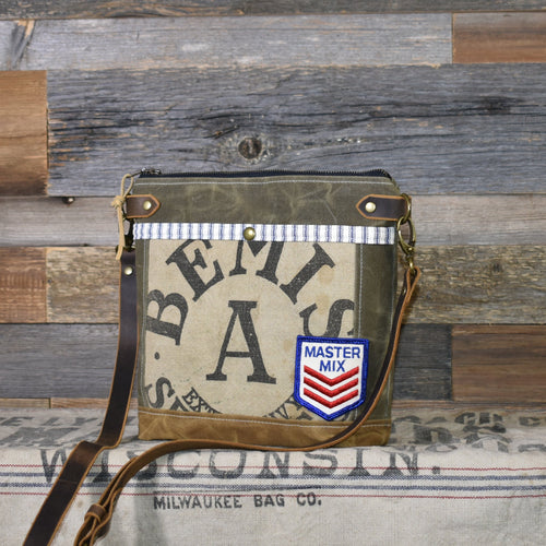 Antique Bemis Seamless Grain Sack + Vintage Master Mix Patch + Waxed Canvas Purse